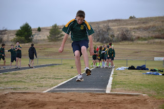 Cody was great at the high jump! His record was 340 and again came in third! The first place boy jumped 420. He didn't even have a chance though, the kids legs were longer than his whole body!